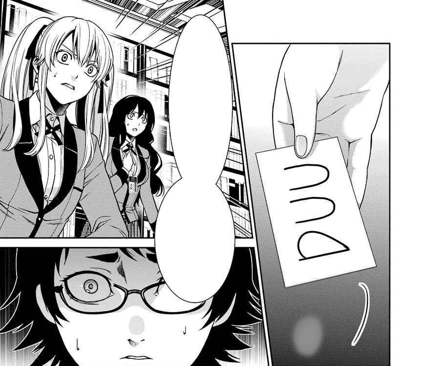 - Używanie zmywacza do paznokci do zapisania części przypuszczenia. To oszustwo zostało wykonane przez Mary Saotome i dzięki temu wygrała drugi mecz z Yukimi Togakushi. Mary użyła zmywacza do paznokci na bazie acetonu, aby zapisać swoją właściwą odpowiedź, DDU. Ale po wyschnięciu zmywacz do paznokci nie był już widoczny na karcie, przez co wyglądało na to, że zapisała UUU jako swoje przypuszczenie. Następnie Mary celowo przewróciła swój napój i zamoczyła kartę, powodując pojawienie się linii napisanych zmywaczem do paznokci.