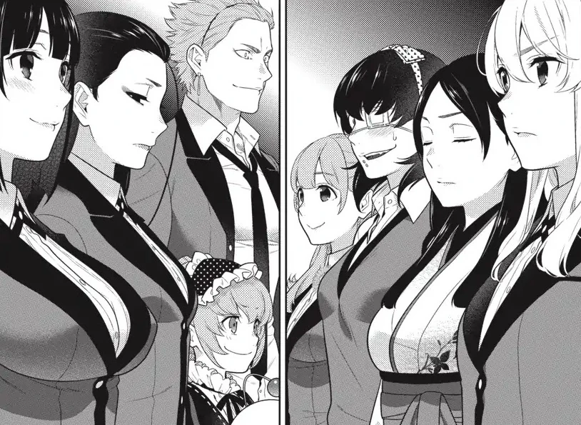 In the final match, Yumeko (132 votes) plays against Mary (368 votes). By successfully predicting each other's hands via the bumps created by Miyo and Erimi, Mary wins the first 2 rounds and Yumeko wins the third. Until this point, they were each betting the minimum participation fee. It is in the fourth round that Yumeko raises, betting 108 votes, the exact number needed to bring them each to 250 votes. Yumeko wins, resulting in a tie. At this point, Terano Totobami realizes Yumeko is striving for two victors, in order to force Terano to pay the students who were betting on the game double the winnings. If both Mary and Yumeko win, Terano will have no money left to buy votes after the tournament. While Terano is confident that mathematically, it should be impossible for them to tie, Chapter 74 ends with both Mary and Yumeko playing paper, resulting in a tie and confirming that some cheat was used.