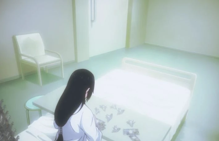 From then on, she stayed in the hospital, where she does nothing except fold Origami out of money bills all day. This must be the only thing she does, since she has hundreds of them. Yumeko would sometimes visit her and Rei as well. Rei once peeked through the door when Yumeko was with her sister. And she didn't see any compassion or sadness in Yumeko's eyes, just pure gambling craziness.