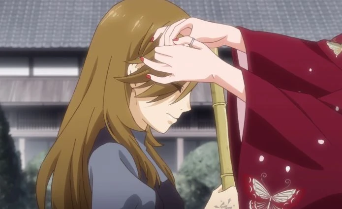 In a flashback, we learn how Rei met Souko. One day, she visited the estate and brought presents for all the children, which was a dragonfly brooch and she gave it to Rei because Souko told Rei "You have beautiful hair. It looks nice on you.", in which Rei didn't know how to respond and simply said that she will do whatever she asks. She took Rei's hand and told her that her heart is hers alone and she shouldn't forget that. Whenever she came to the estate, she looked at Rei and smiled. But, Souko got into a clan conflict and started to drain her, which made her to became more and more gaunt (a person who is lean and haggard, especially because of suffering, hunger or age). One fateful day, she was forced to bet everything she had as a last effort in a gamble. But she was defeated and let out a terrified scream.